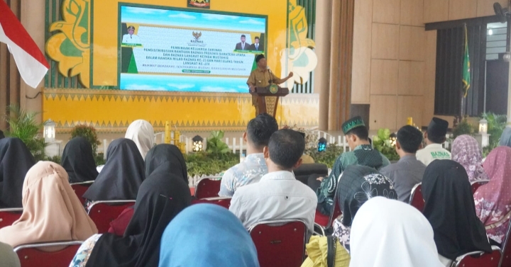 Plt.Bupati Langkat H.Syah Afandin SH menyampaikan ucapan terima kasih kepada Baznas Provinsi Sumatera Utara dan Baznas Kabupaten Langkat yang telah menyampaikan bahwasannya bentuk kepedulian saya terhadap Baznas Langkat sehingga bertumbuh dan berkembang.
