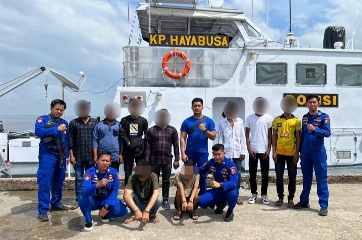 Selanjutnya TIM KP. Hayabusa-3008 mengamankan sdr. AR dan Sdr. MP serta 7 (tujuh) WNA Bangladesh menuju KP. Hayabusa-3008 guna proses pemeriksaan lebih lanjut.