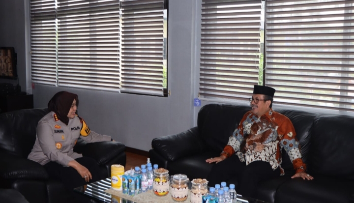 Kapolresta Cirebon, Kombes Pol Sumarni, S.I.K, S.H, M.H, menerima kunjungan perdana Bupati Cirebon, Drs. H. Imron, M.Ag, di ruang kerja Kapolresta Cirebon, Jumat (12/1/2024). Kunjungan tersebut dalam rangka silaturahmi perkenalan diri Kapolresta Cirebon yang baru.