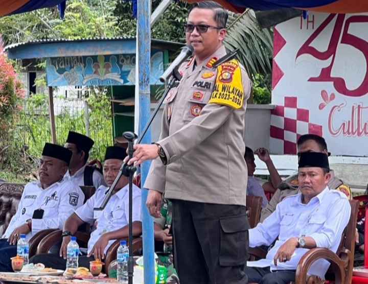 Pada acara Pelantikan Perangkat Pemerintah Kelurahan Pergam, Bapak Kapolres Bengkalis AKBP Setyo Bimo Anggoro, S.H.,S.I.K.,M.H melalui AKP Siswoyo,S.H Kapolsek Rupat dalam sambutannya menyampaikan mengajak perangkat yang telah dilantik untuk senantiasa menciptakan Kondisi Pemilu Aman dan Damai.