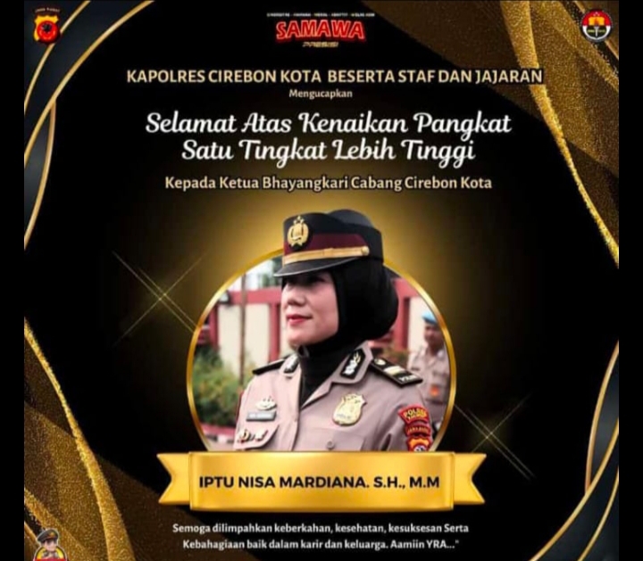 Keluarga Besar Polres Cirebon Kota Beserta Jajaran dan Staf Mengucapkan Selamat atas kenaikan pangkat 1 tingkat dari IPDA Menjadi IPTU Nesa Mardiana SH, MH