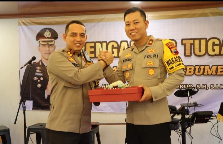 Upacara penyerahan jabatan dilaksanakan di Rupatama Gedung Tribrata Polres Kebumen dipimpin Kapolres Kebumen AKBP Recky dan dihadiri PJU Polres, serta Kapolsek jajaran, Senin 29 Januari 2024.