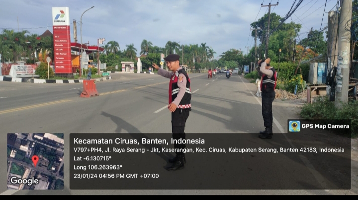 Satsamapta Polres Serang Polda Banten laksanakan Comander Wish Kapolres Serang Program Gema Cidurian Poin satu “Silat Golok” turunkan personel untuk melaksanakan Strong Point sore dengan melakukan Penjagaan dan pengaturan arus lalu lintas sore hari, dalam rangka mengantisipasi gangguan kamtibmas dan kemacetan arus lalulintas yang disebabkan oleh padatnya pengguna jalan yang pulang kerja baik yang menuju kearah kota Serang maupun kearah Cikande, selasa (23/01/2024) .