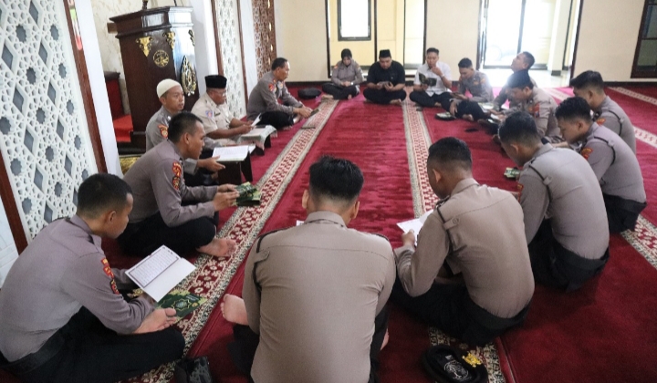 Anggota Polres Bangkalan secara bergiliran menggelar Khotmil Qur’an. Kegiatan diselenggarakan di Masjid Raudlatul Hidayah Mapolres Bangkalan.