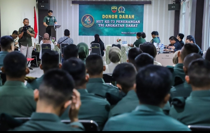 Pembukaan acara bakti sosial donor darah Pendam I/BB dalam rangka menyambut HUT ke -73 Penerangan TNI AD Tahun 2024.