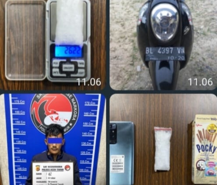 25 Januari 2023 Anggota Opsnal Satresnarkoba Polres Aceh Timur Polda Aceh mengamankan seorang pelaku tindak pidana penyalahgunaan narkotika berinisial AZ, 20 tahun, warga Desa Meunasah Teungoh, Kecamatan Pantee Bidari. AZ diamankan petugas di wilayah Kecamatan Madat, Kabupaten Aceh Timur pada hari Senin, (22/01/2024) sekira pukul 15:30 WIB.