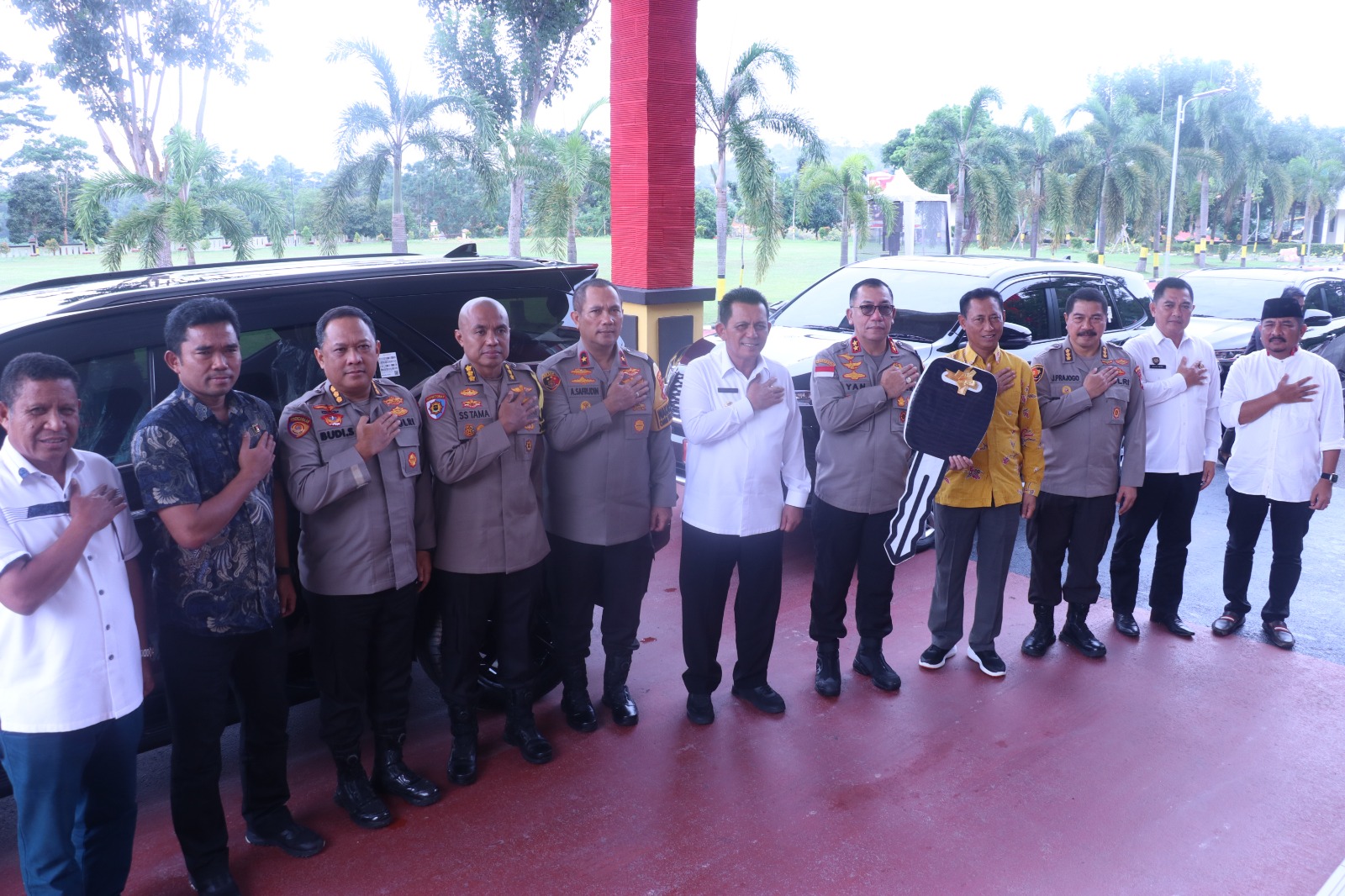 Kapolda Kepri Irjen. Pol. Drs. Yan Fitri Halimansyah, M.H., terima kunjungan silahturahmi Gubernur Provinsi Kepri H. Ansar Ahmad, SE, MM beserta staff dalam rangka penyerahan 4 (empat) unit mobil Hibah ke Polda Kepri bertempat di ruang kerja Kapolda Kepri pada hari Jumat (19/01/2024).