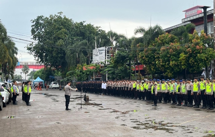 Kapolrestabes Palembang, Kombes Pol Dr. Harryo Sugihhartono, S.I.K., M.H., memberikan arahan kepada seluruh personel yang terlibat dalam Operasi Mantap Brata menekankan pentingnya