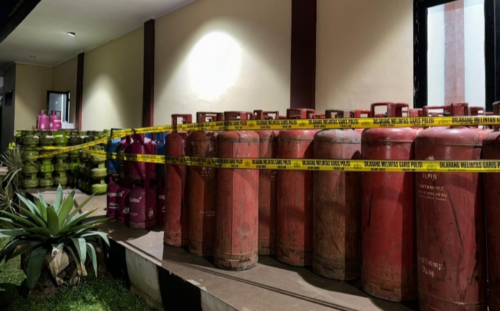 Adapun Barang Bukti yang diamankan ialah 240 (Dua Ratus Empat Puluh) buah Tabung Gas ukuran 3 KG yang kosong, 47 (Empat Puluh Tujuh) buah Tabung Gas berisi ukuran 3KG yang berisi, 20 (Dua Puluh) buah Tabung Gas ukuran 5,5 KG merk Bright Gas warna merah muda yang kosong, 6 (Enam) buah Tabung Gas ukuran 12 KG merk Elpiji warna biru yang kosong, 28 (Dua Puluh Delapan) buah Tabung Gas ukuran 12 KG merk Bright Gas warna merah muda yang kosong, 33 (Tiga Puluh Tiga) buah Tabung Gas ukuran 50 KG yang kosong, 7 (Tujuh) nuah Pipa Besi, 11 (Sebelas) buah Besi untuk mendorong pentil Tabung Gas, 1 (Satu) buah jarum pencongkel karet Seal Tabung Gas, 1 (Satu) buah paku pencongkel karet Seal Tabung Gas, 1/2 (Setengah) ember segel Tabung Gas ukuran 3 KG, 1 (Satu) buah ember pemanas Tabung Gas 3 KG, 1 (Satu) buah kompor Gas untuk memasak air panas, 1(Satu) plastik Seal Tabung Gas Non Subsidi, 1 (Satu) buah panci mini untuk memasak air panas, 1 (Satu) buah teko untuk memasak air panas, 1 (Satu) buah jerigen yang sudah dipotong atasnya untuk tempat Tabung Gas 3 KG disiram air panas, 1 (Satu) buah timbangan merk Neo Cahaya Adil, 1 (Satu) buah HP merk Samsung Galaxy A14 warna hitam dan 1 (Satu) unit Mobil Suzuki ST-150 Pick UP Tahun 2004 warna hitam.
