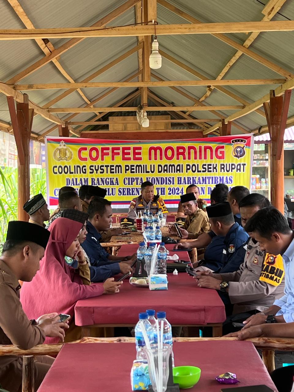 Salah satu program unggulan Polsek Rupat melalui Coffe Morning dalam kesempatan menyapa dan berinteraksi dengan berbagai stokholder Penyelenggara Pemilu ditingkat desa/kelurahan sebagai bentuk Colling System dan Cipkon Harkamtibmas ciptakan Pemilu Serentak Tahun 2024 Aman dan Damai.