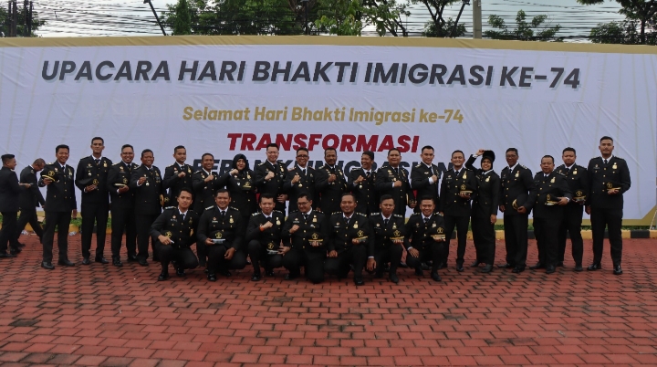 Puncak serangkaian kegiatan Hari Bhakti Imigrasi (HBI) Ke-74 yang jatuh pada Jumat tanggal 26 Januari 2024 ditandai dengan dilaksanakannya upacara Upacara Peringatan HBI ke-74 dengan tema “Transformasi Peran Keimigrasian Melalui Strategi Digitalisasi”.