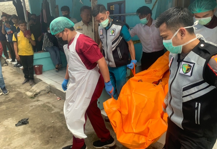 “Awalnya kami mengintip dari lubang fentelasi jendela, saya liat korban dalam posisi tengkurep, lalu kami mendobrak pintu yang terkunci, dan diketahui korban sudah meningga dunia”, terangnya.