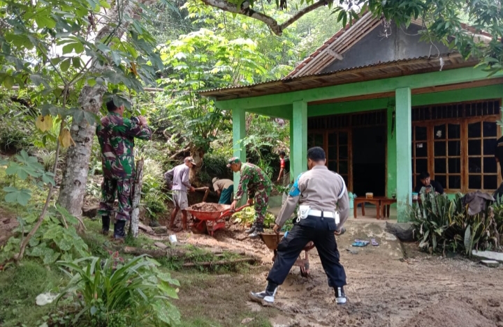 Rumah Warga Karanggayam Nyaris Tertimbun Longsor, Polsek dan Koramil Turun Evakuasi Lumpur
