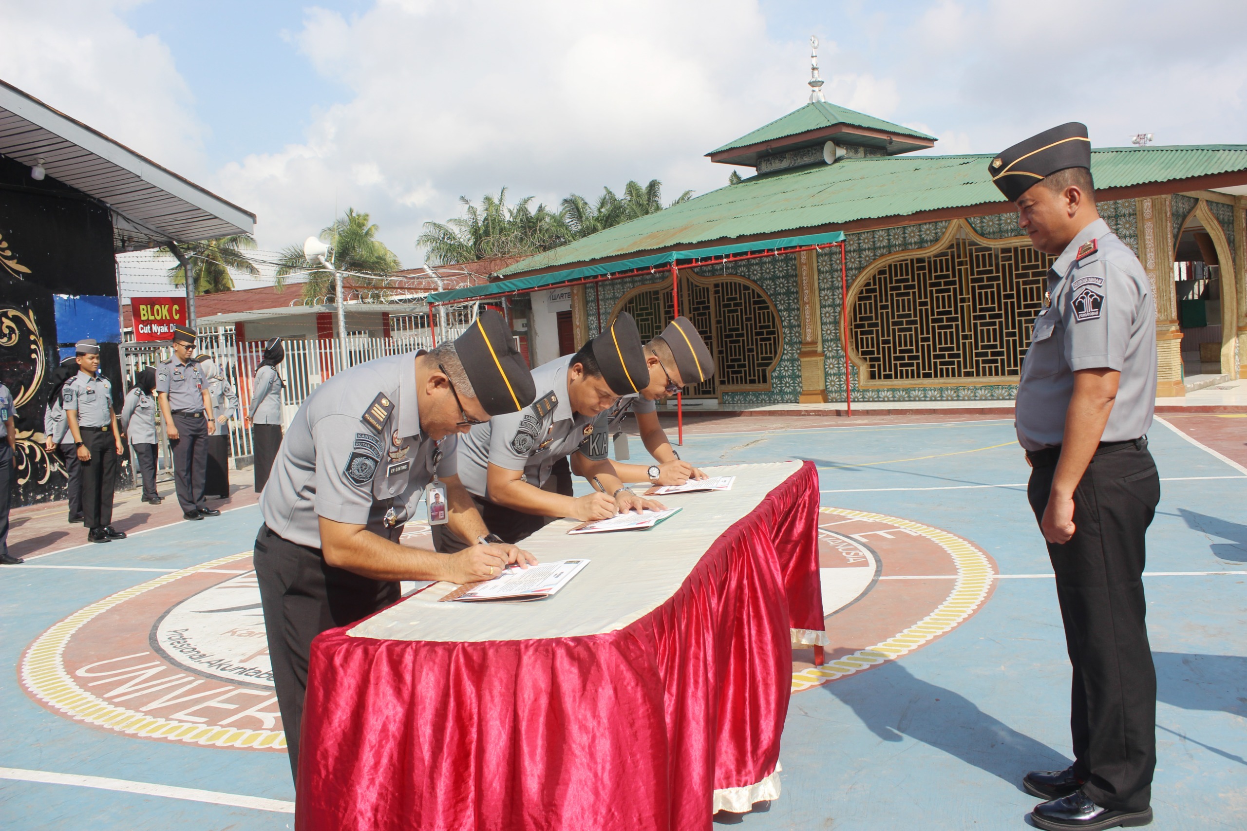Penandatanganan komitmen ini merupakan bukti keseriusan Rutan Dumai guna mewujudkan Wilayah Bebas dari Korupsi yang berlangsung di lapangan serbaguna Rutan, Senin (22/1).