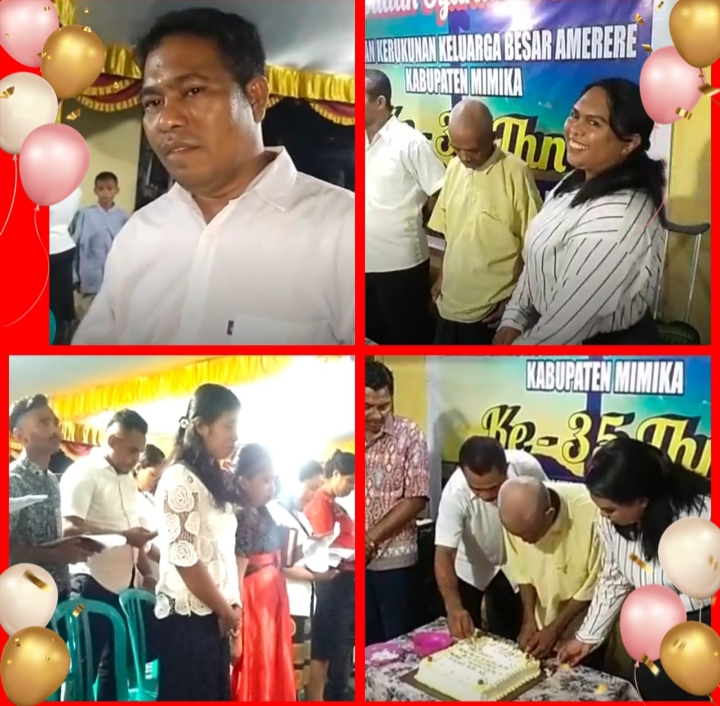 Ibadah Syukuran Hari Ulang Tahun (HUT) Ikatan Kerukunan Keluarga Besar Amerere di Kabupaten Mimika, Provinsi Papua Tengah, sekaligus pelantikan Badan Pengurus Baru Periode 2024-2027 yang dipilih secara Sah oleh warga Amerere Kabupaten Mimika, pada hari Minggu (21/01/2024) Pkl 14.00 WIT bertempat di rumah ketua Kalwedo MBD Timika Kabupaten Mimika Bapak Manix Laimuslo.