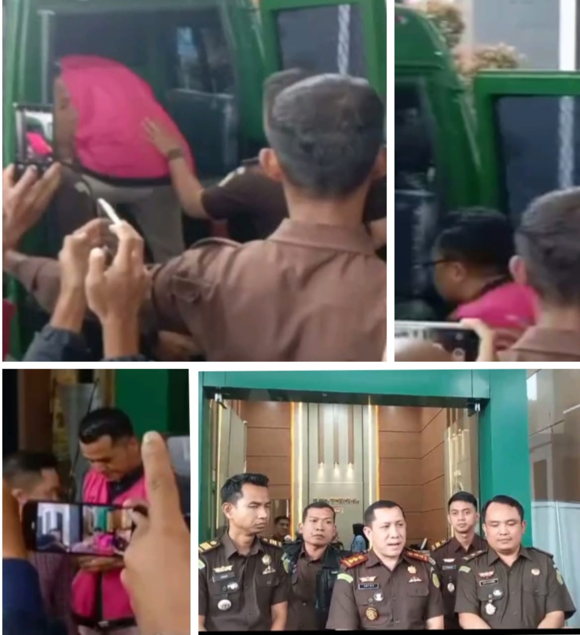 Setelah proses pemeriksaan kesehatan, ketiganya terlihat keluar dari kantor Kejari Sungai Penuh mengenakan rompi pink (baju tahanan), digiring petugas ke mobil tahanan untuk dibawa ke Rutan Sungai Penuh.