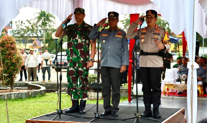 Apel Gelar Pasukan Satgas Linmas, Bhabinkamtibmas, dan Babinsa di Kota Pekanbaru untuk Sukseskan Pemilu 2024