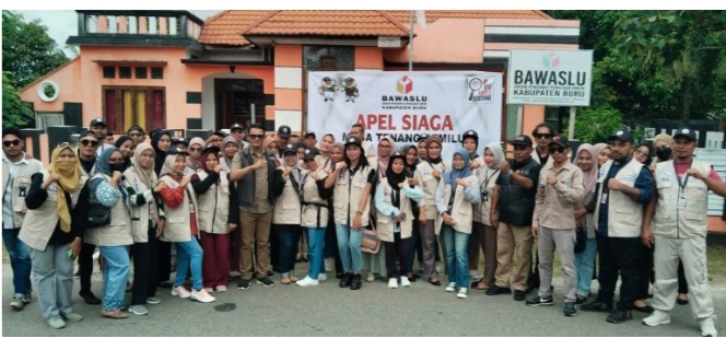 Menjelang tahapan masa tenang dan pemungutan serta penghitungan suara Pemilu Tahun 2024 , Badan Pengawas Pemilu (Bawaslu) Kabupaten Buru melakukan Apel Siaga pengawasan masa tenang dan jelang pemungutan dan penghitungan suara Pemilu Tahun yang jatuh pada, (12/02/2024).