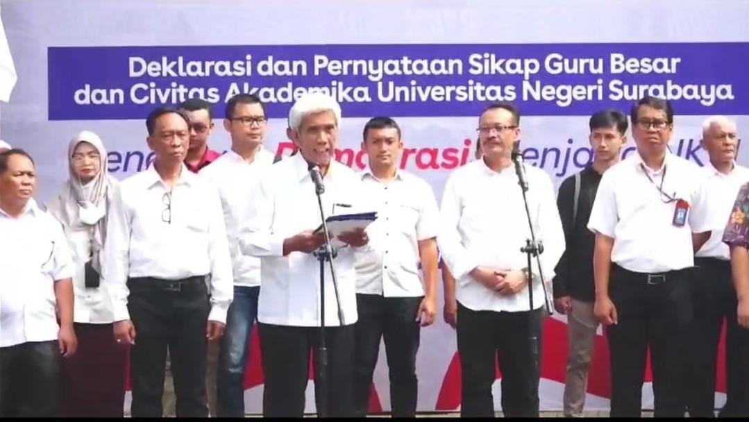 Pernyataan tersebut dinyatakan melalui Deklarasi dan Pernyataan Sikap Guru Besar dan Civitas Akademika Universitas Negeri Surabaya ( Unesa) pada Senin (5/2) di Surabaya.