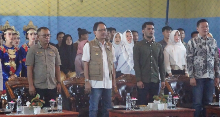Bupati Pesisir Barat (Pesibar), Dr. Drs. Agus Istiqlal, S.H., M.H., menghadiri pelantikan pengurus Keluarga Besar Pecinta Musik dan Seni (KBPMS) Pesibar Periode 2024-2027, di Gedung Olah Raga (GOR) Khang Nyepok Iting Kecamatan Pesisir Tengah, Sabtu (10/2/2024).