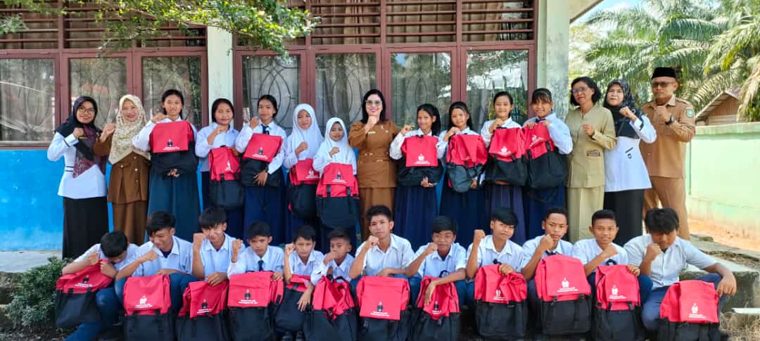 Bupati Bengkalis Memberikan Bantuan Tas Sekolah untuk Siswa SMPN 2 Rupat Utara