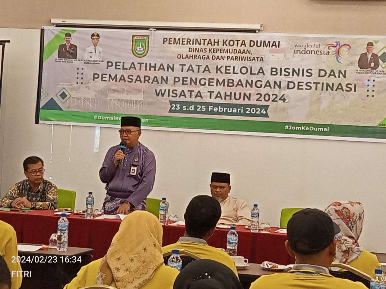 Walikota Dumai dalam hal ini diwakili oleh Asisten Pemerintahan dan Kesejahteraan Rakyat Sekretariat Daerah Kota Dumai H.Yusrizal, S.sos,M.Si menghadiri sekaligus membuka Pelatihan Tata Kelola Bisnis dan Pemasaran Pengembangan Destinasi Wisata Tahun 2024 yang bertempat di Hotel The Zuri Dumai ( 23/02/2024).