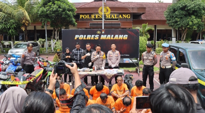 Kepolisian Resor Malang, Polda Jatim, berhasil menangkap 10 pelaku dengan 29 kasus tindak pidana pencurian dan penadahan kendaraan bermotor (curanmor) di sejumlah wilayah Kabupaten Malang.