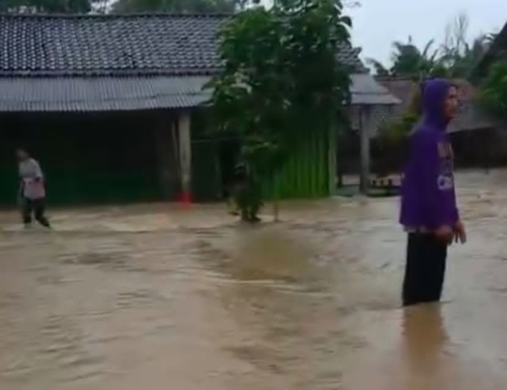 Mulai semalam banjirnya, karena disini hujan deras. Air sungai yang berada di tengah kampung meluap,ungkap Krisbandi, Jumat, 9 Februari 2024.