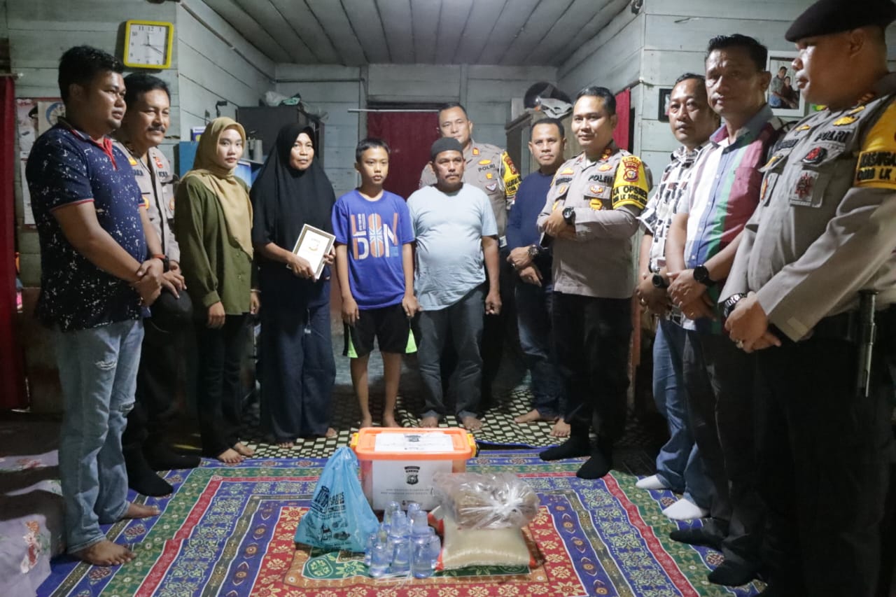 Kapolres Kuantan Singingi (Kuansing) AKBP Pangucap Priyo Soegito bersama rombongan mengunjungi rumah almarhum Werman (47), di Dusun 1, RT 001, RW 001, Desa Teratak Jering, Kecamatan Kuantan Hilir Seberang, Kabupaten Kuansing, pada Minggu (25/2/202024).