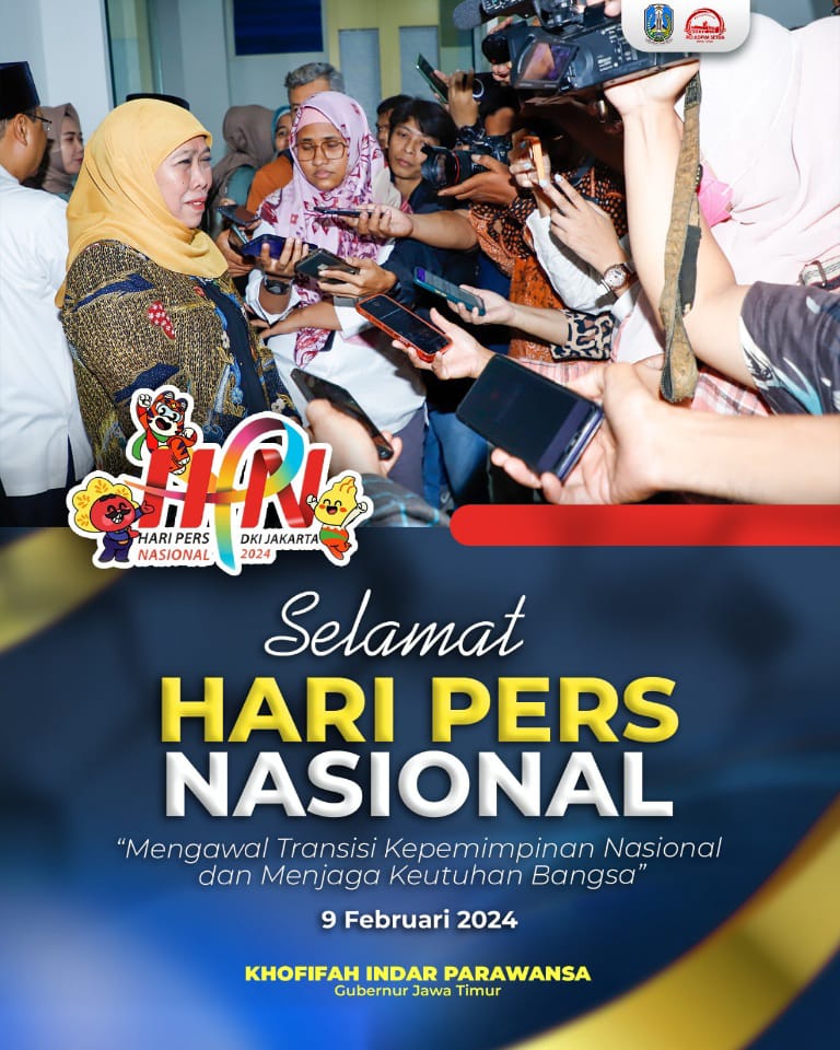 Gubernur Jawa Timur Khofifah Indar Parawansa mengajak seluruh insan pers untuk turut serta mewujudkan Pemilu Damai Demokratis 2024. Hal ini disampaikannya tepat pada Hari Pers Nasional yang jatuh pada 9 Februari 2024.