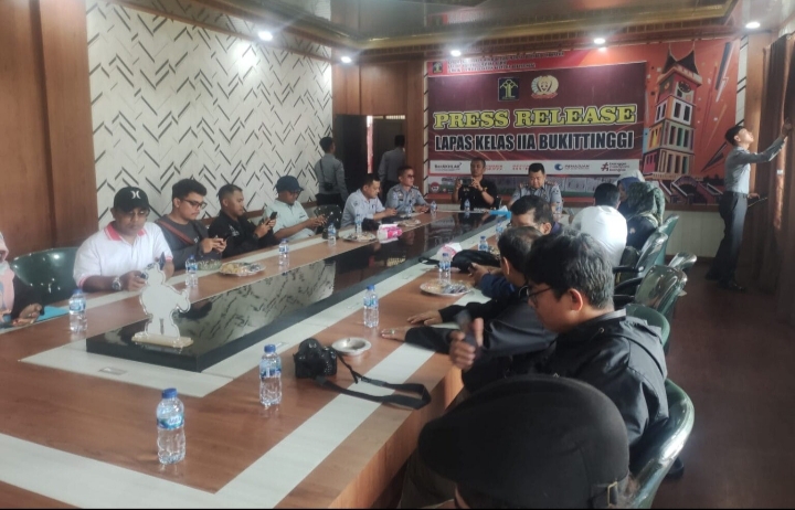 Lapas Bukittinggi Sumatera Barat, dan PWI Kota Bukittinggi menggelar Konferensi Pers dalam Rangka 100 Hari Program Kerja Kepala Lembaga Pemasyarakatan Kelas IIA Bukittinggi.