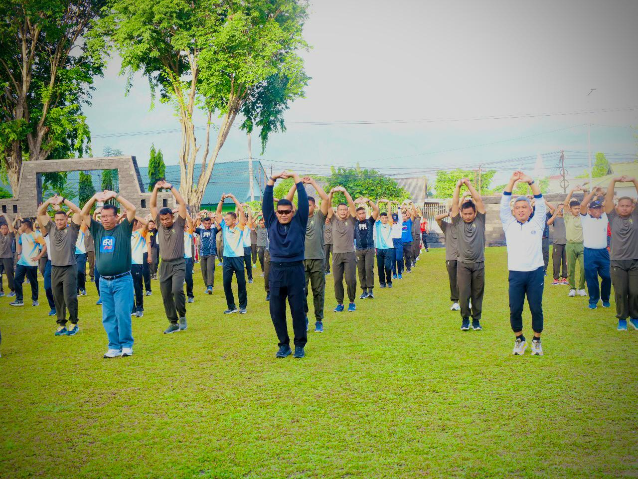 Olahraga bersama Korem 132/Tdl dengan Bank BRI di ikuti seluruh anggota Makorem 132/Tdl dan personel Bank BRI, kegiatan di awali dengan apel dilanjutkan senam bersama.