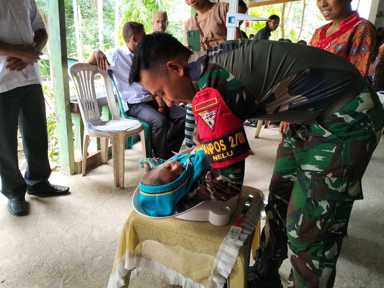 Operasi Timbang Bulan Balita, Pos Nelu Satgas Yonkav 6/Naga Karimata Ikuti Kegiatan Penimbangan Berat Badan Anak