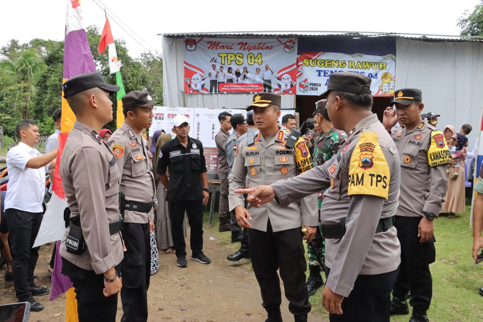 “Sampai saat ini petugas gabungan dari TNI Polri bersama Linmas sudah berada di TPS sejak pergeseran pasukan kemarin dan akan mengawal serta mengamankan hingga tahapan akhir Pemilu 2024” Ujar Kapolresta