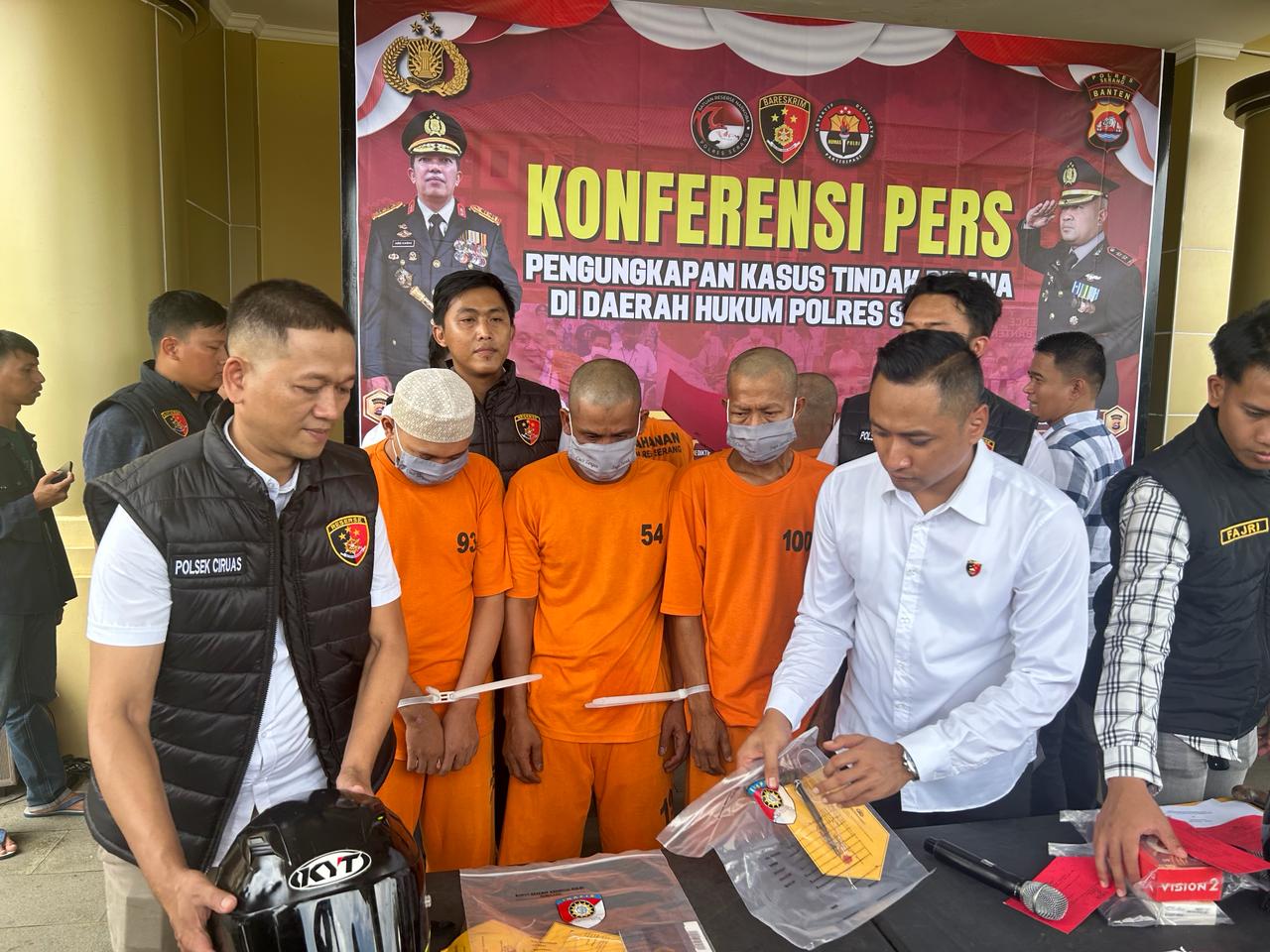 Unit Reskrim Polsek Ciruas Polres Serang Rilis penangkapan tersangka Pencurian Sepeda Motor yang sempat diamankan warga, di Mapolres Serang tadi pagi (07/02/24).