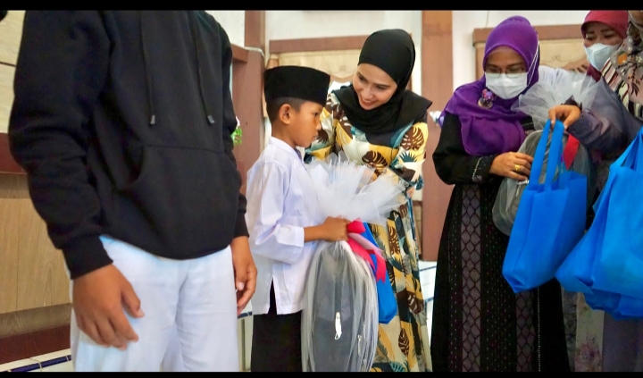 Acara tersebut diawali dengan pembacaan ayat suci Alquran serta menyantuni anak yatim.