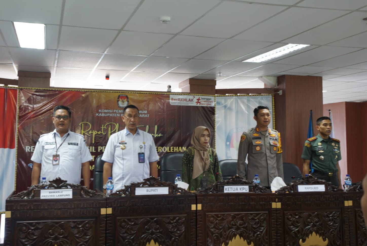Rapat pleno terbuka tersebut juga dihadiri Ketua Komisi Pemilihan Umum (KPU) Pesibar, Marlini, S.H.I., M.A., dan para komisioner, Kapolres Pesibar, AKBP. Alsyahendra, S.IK., M.H., Dandim 0422/Lampung Barat (Lambar), Letkol. Inf. Rinto Wijaya, dan perwakilan Badan Pengawas Pemilu (Bawaslu) Provinsi Lampung, dan Bawaslu Pesibar, serta partai politik peserta pemilu.