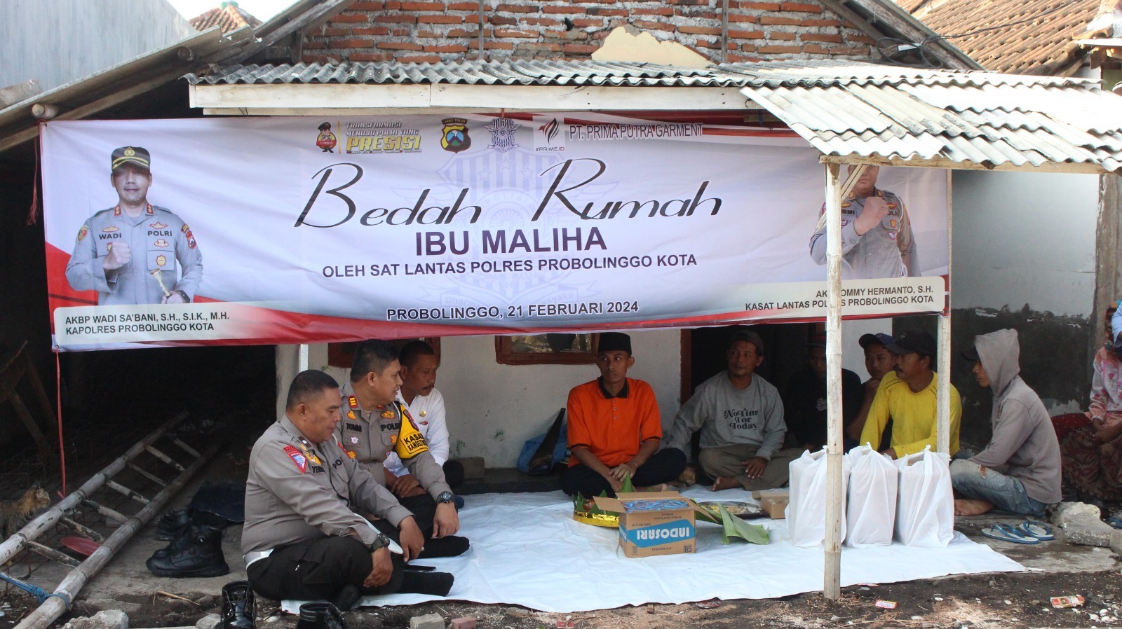 Bersama dengan PT Prima Putra Garmen Kota Probolinggo, Polres Probolinggo Kota melalui Satlantas Polres melaksanakan kegiatan bedah rumah milik Maliha (40) yang merupakan warga Kelurahan Mayangan, Kecamatan Mayangan Rabu (21/2/24).