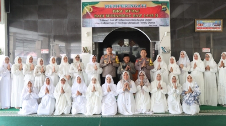 Dalam suasana khidmat, Kepolisian Resor Tanggamus menggelar peringatan Isra Miraj Nabi Muhammad SAW 1445 Hijriah dengan tema “Hikmah Isra Miraj Menambah Modal Dalam Mewujudkan Polri Presisi, Siap Mengawal Pemilu”. Acara tersebut dilangsungkan di Masjid Hidayatullah komplek Mapolres Tanggamus pada Kamis, 22 Februari 2024.