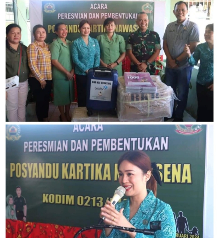 (23/02/2024) Ketua TP. PKK Kota Gunungsitoli Ny. Venny Sowa’a Laoli menghadiri acara Pembentukan dan Peresmian Posyandu Kartika Nawasena di Wilayah Kodim 0213/Nias, bertempat di Polkes 01.09.01 Gunungsitoli, Jumat (23/02/2024).
