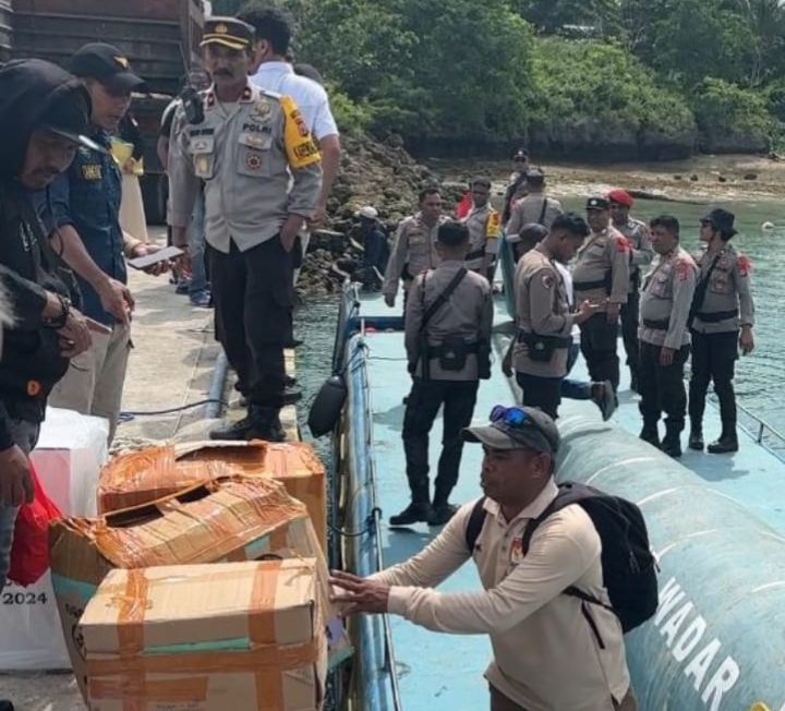 Kapolres Tual AKBP Prayudha Widiatmoko S.I.K kalau pendistribusian logistik pemilu kali ini, menggunakan Long Boat Ngur Wardar menuju Kecamatan Tayando-Tam.