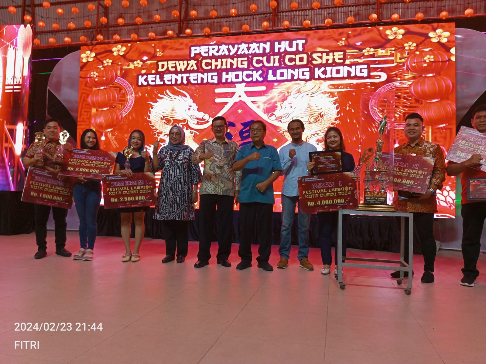 Setelah melalui tahap penilaian pada tanggal 9 Februari 2024 lalu, tibalah saatnya pengumuman Pemenang Festival Lampion Tahun 2024 sempena Tahun Baru Imlek 2575 Kongzili Tahun 2024.