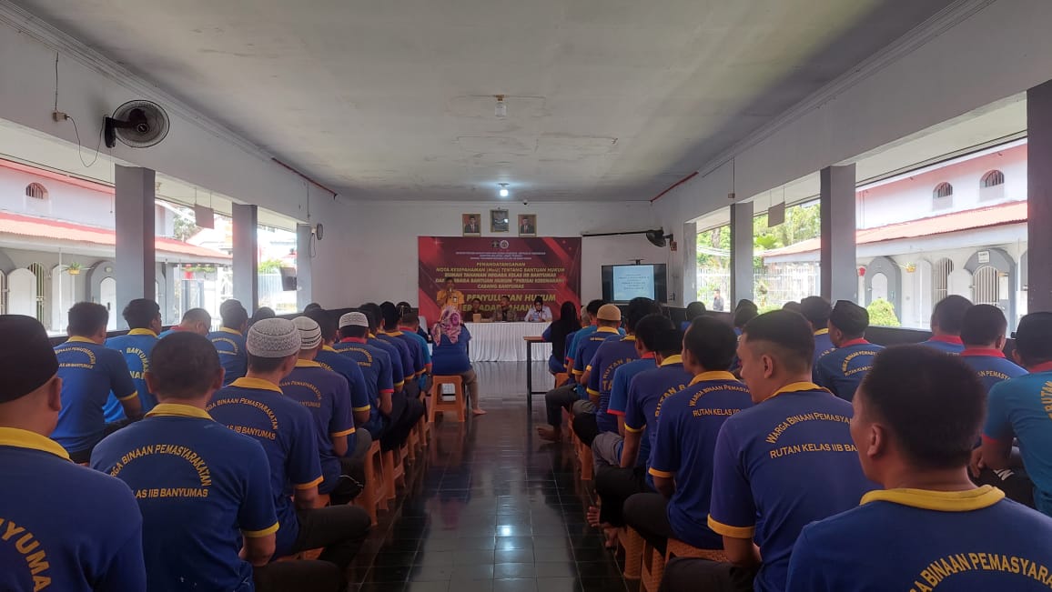 Rumah Tahanan Negara Kelas IIB Banyumas bersama Lembaga Bantuan Hukum Perisai Kebenaran menyelenggarakan Penyuluhan Hukum terhadap 50 orang tahanan. Kegiatan ini berlangsung di Aula Pembinaan Rutan Banyumas, Rabu (31/01).