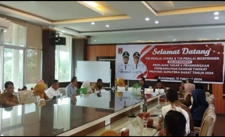 Pemerintah Kota (Pemko) Bukittinggi Sumatera Barat, ikuti penilaian tahap II Penghargaan Pembangunan Daerah (PPD) tingkat Provinsi Sumatra Barat 2024 berlangsung di TUP Sekda, Balai Kota, Senin (12/2/2024).