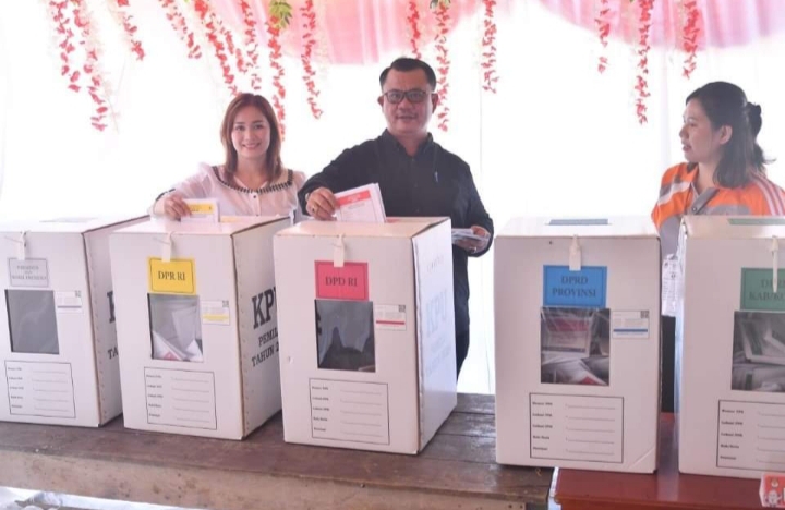 (14/02/2024), Wali Kota Gunungsitoli Sowa’a Laoli, SE,. M, Si bersama dengan Ketua PKK Kota Gunungsitoli Ny. Venny Sowa’a Laoli melaksanakan pencoblosan surat suara pada Pemilu Tahun 2024 di TPS II (dua) Pekan Humene Desa Hilimbawodesolo Kecamatan Gunungsitoli Idanoi, Rabu (14/02/2024).