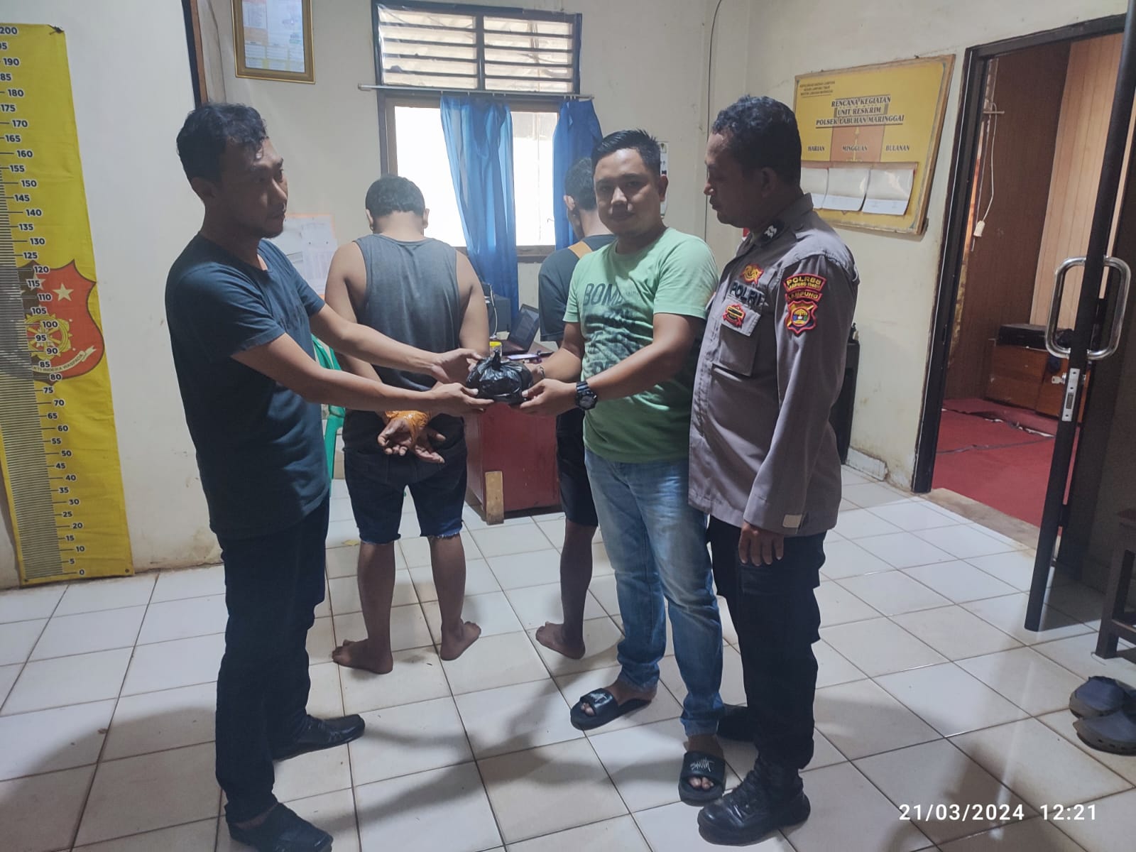 Pihak Kepolisian meringkus para tersangka pada Kamis (21/03/24) pukul 02.30, berikut barang bukti berupa 1 bilah senjata tajam jenis pisau sepanjang kurang lebih 30 Cm dengan gagang kayu warna coklat dan sarung kayu warna hitam, 16 Plastik klip berisi bubuk Kristal Putih diduga Narkotika Gol I bukan tanaman jenis Sabu, 2 buah Korek api warna hijau dan kuning, 2 buah botol kaca kecil / Pireks ( diduga alat untuk mengkonsumsi narkotika ), 1 buah botol plastik ( diduga alat untuk mengkonsumsi narkotika ) dan 1 buah dompet kecil warna hitam semi kulit earphone bluetooth (diduga alat tempat menyimpan narkotika untuk mengkonsumsi narkotika).