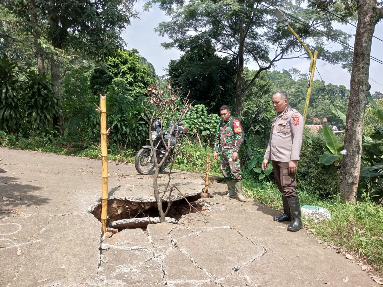 Anggota Polsek Sukamakmur Cek Lokasi TKP Adanya Pergeseran Tanah Desa Cibadak Kecamatan Sukamakmur
