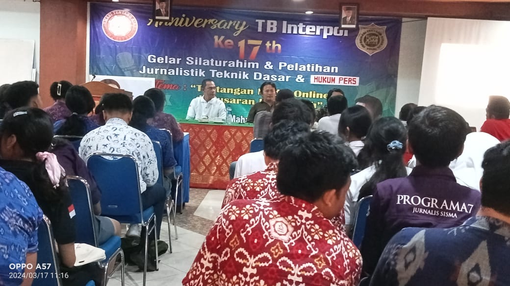 Anniversary TB interpol ke 17 Tahun melaksanakan kegiatan ,gelar Silaturahmi dan Pelatihan Jurnalistik tentang Teknik Dasar & Hukum Pers berlangsung di Aula Agung Room Hotel Tower Mahajaya Ubung Denpasar Utara ,Minggu 17/3/24