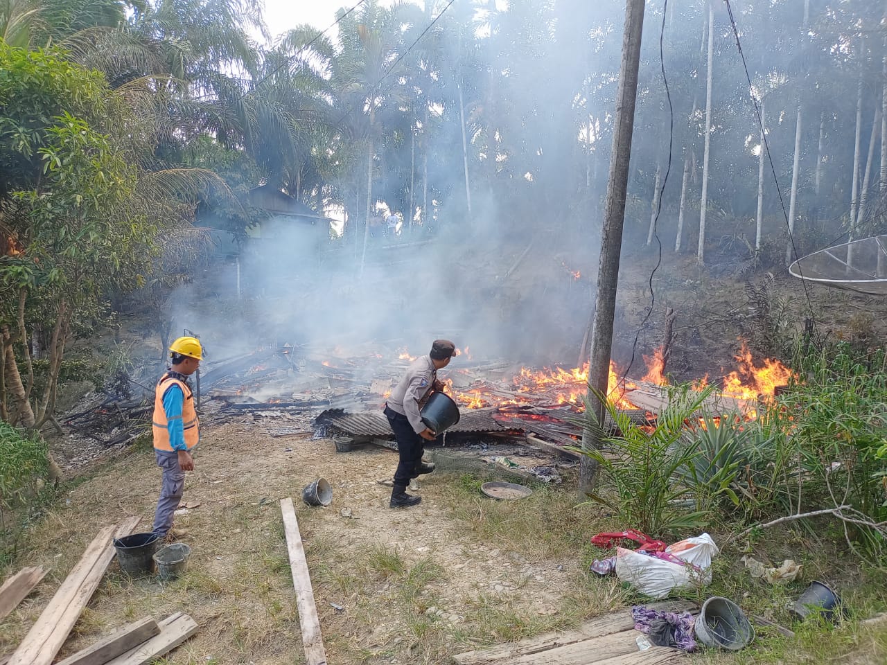 “Memperoleh informasi kejadian itu, anggota kami langsung ke lokasi dan bersama warga sekitar berusaha memadamkan api, namun karena keterbatasan air dan alat sehingga bangunan rumah milik Saeli habis terbakar,” sebut Kapolsek.
