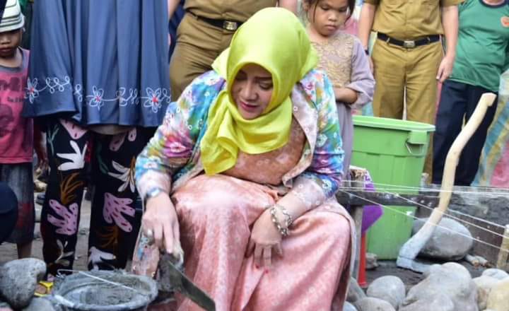 Dalam kesempatan tersebut, Bupati berkesempatan melakukan peletakan baru pertama dan sekaligus secara langsung meresmikan pembangunan rumah layak huni Ibu Nurlela.